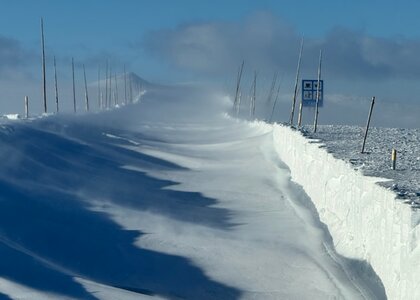 Kraftig vind frå vest og nysnø gjorde at fylkesveg 51 ikkje kunne opnast før palmehelga.