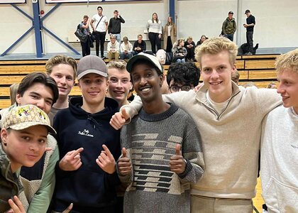 Han har underholdt elever og lærere med et inspirasjons-foredrag.
